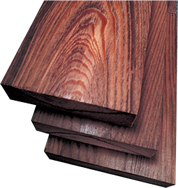 개질처리목재 국산 소나무 전라, 경상, 충청, 강원이남 일부 권역에서 나는 목재입니다. 6.25 전쟁 이후 1960년대에 집중적으로 심어져 벌기령이 50년 되어 이제 벌목을 해서 소모를 해야 합니다. 현재 펄프용, 산업용, 보드용 등으로만 활용되고 있으나 소나무에 천연 약제를 주입하고 열처리하여 옥외용으로 밖에서도 안전하게 오래 쓰게 처리한 것이 특징입니다. 함수율 : 6% 기건밀도 : 0.65 g/㎤ 휨강도 : 70 N/㎟ 섬유방향 압축강도 : 65.0 N/㎟ |